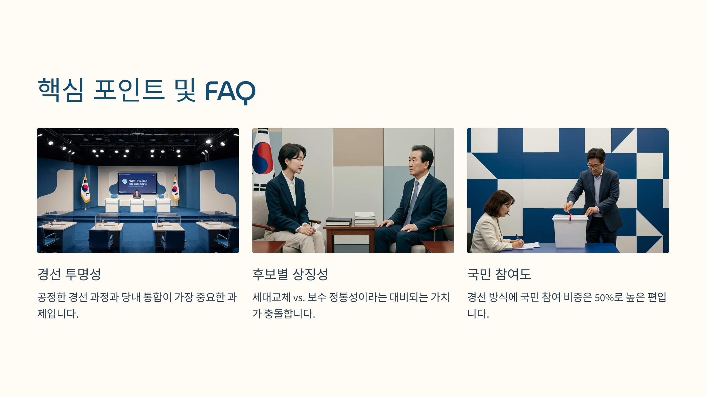 이번 경선은 보수 진영의 향후 노선을 결정하는 중요한 분기점이라 모두의 관심이 쏠리고 있죠. 특히 누가 당권을 잡느냐에 따라 총선 전략과 대통령 선거까지 큰 영향을 줄 수 있어요.