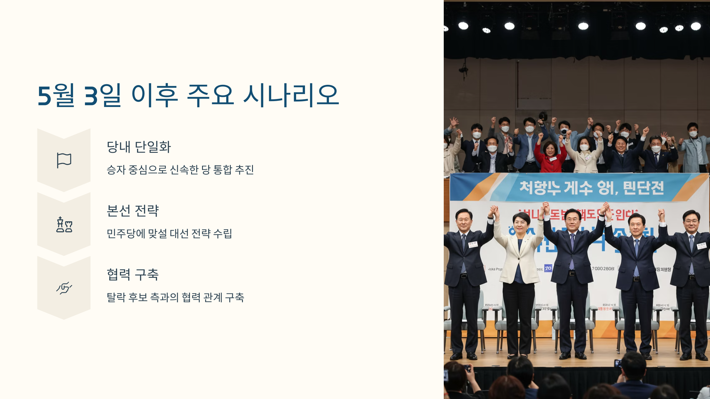 5월 3일 최종 경선 결과에 따라 국민의힘 내부 구도는 크게 달라질 거예요. 김문수가 이기면 전통 보수 강경화가 예상되고, 한동훈이 승리하면 젊은 감각의 당 혁신이 가속화될 수 있어요. 🔥