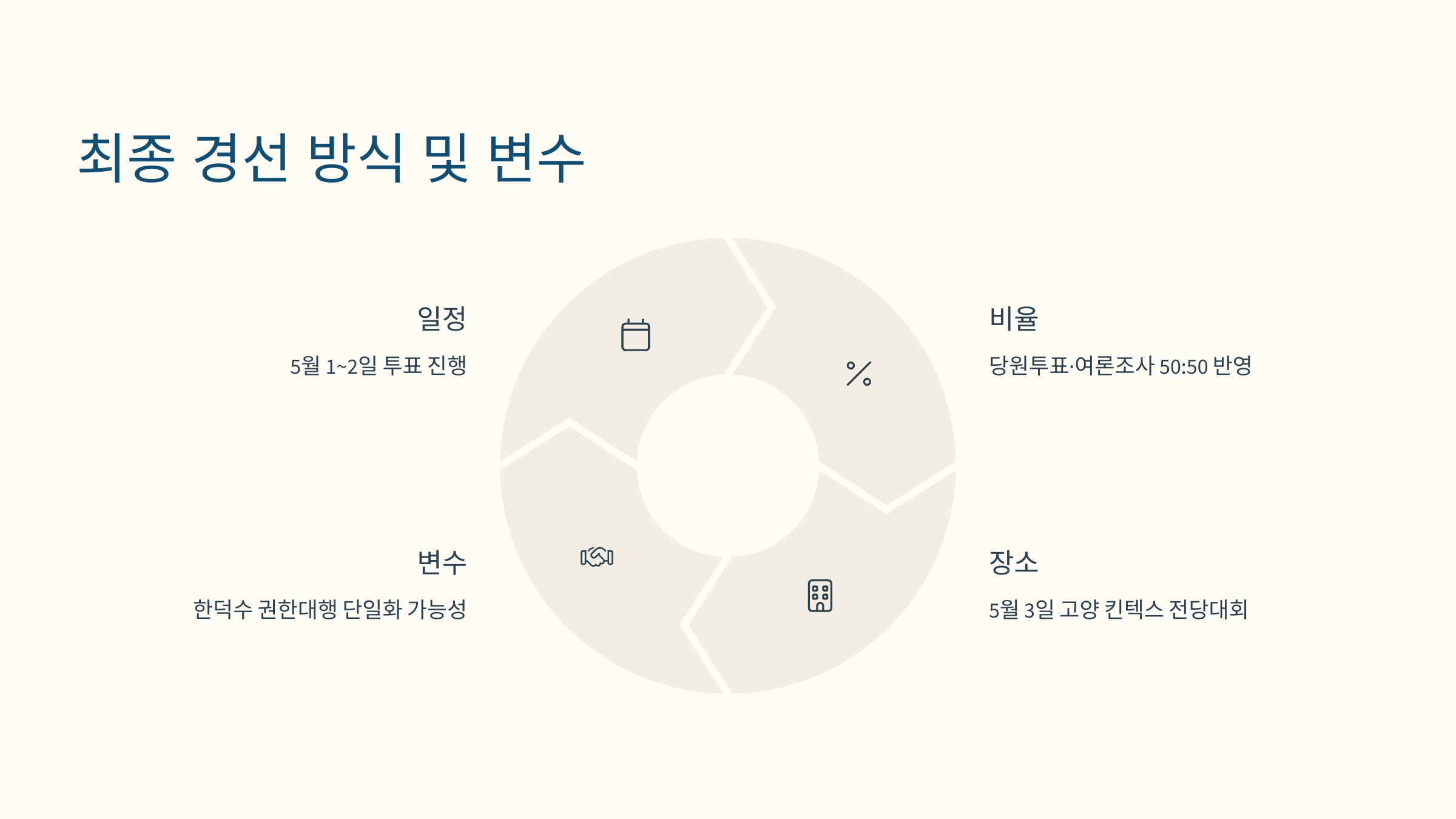 최종 투표는 5월 3일 진행되고, 결과는 같은 날 바로 발표된다고 해요! 국민의힘 안팎에서는 이미 뜨거운 신경전이 벌어지고 있는 상황이에요. 🔥