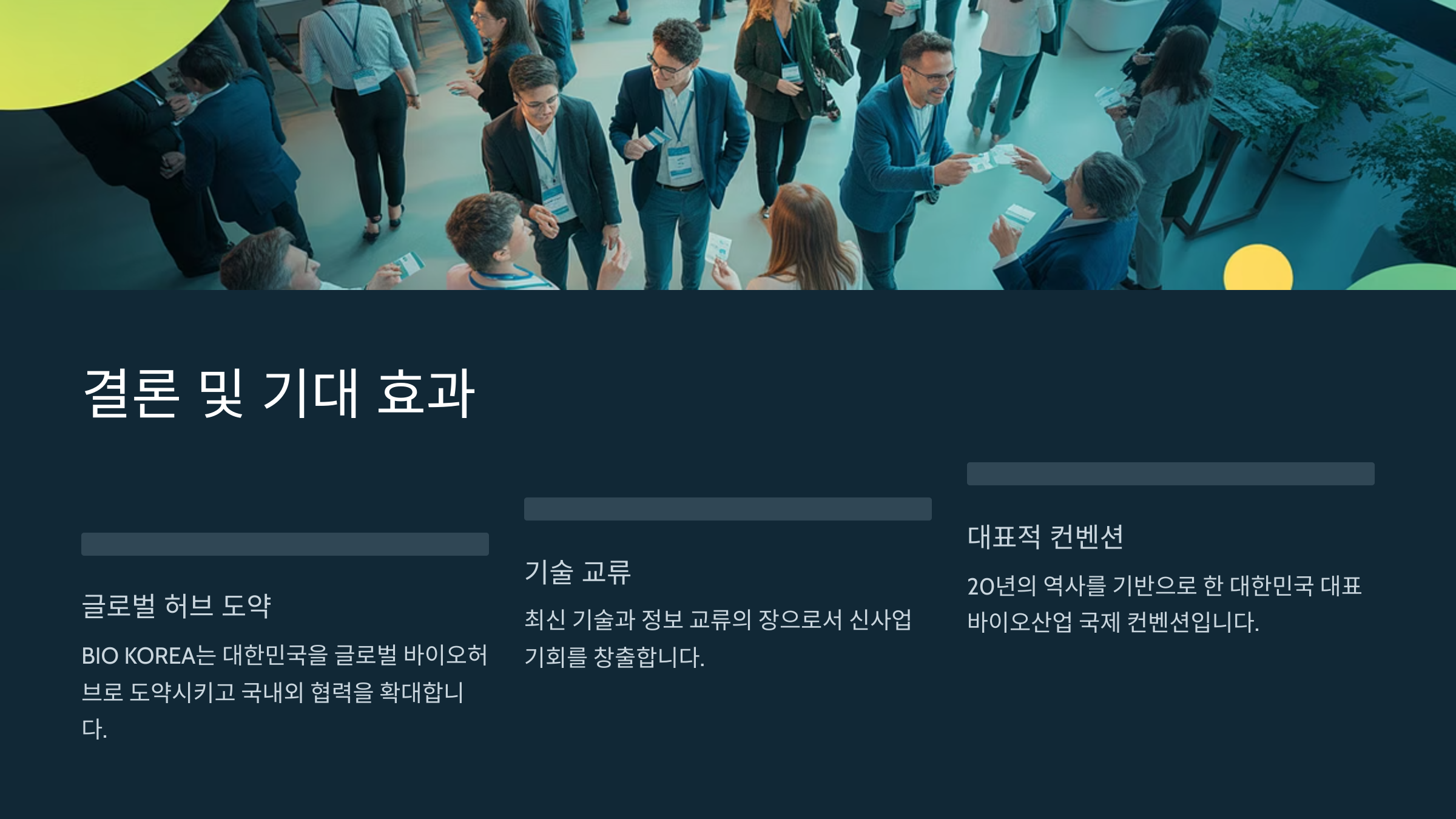 바이오코리아는 이제 단순한 전시회가 아니라, 글로벌 비즈니스 플랫폼으로 자리매김하고 있어요. 기술 발표뿐 아니라 투자 유치, 해외 진출 상담, 공동연구 논의 등 실질적인 성과를 도출하는 자리랍니다.