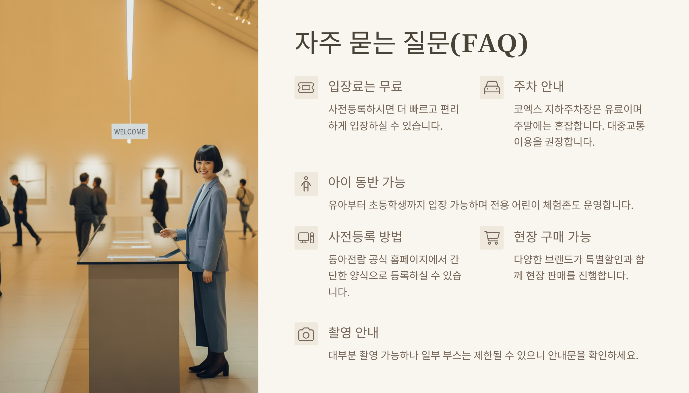 브랜드별 이벤트 부스도 있으니, 입장 시 배포되는 전시 가이드북은 꼭 챙기세요. 어떤 부스에서 어떤 혜택이 있는지 한눈에 확인할 수 있거든요. 💡