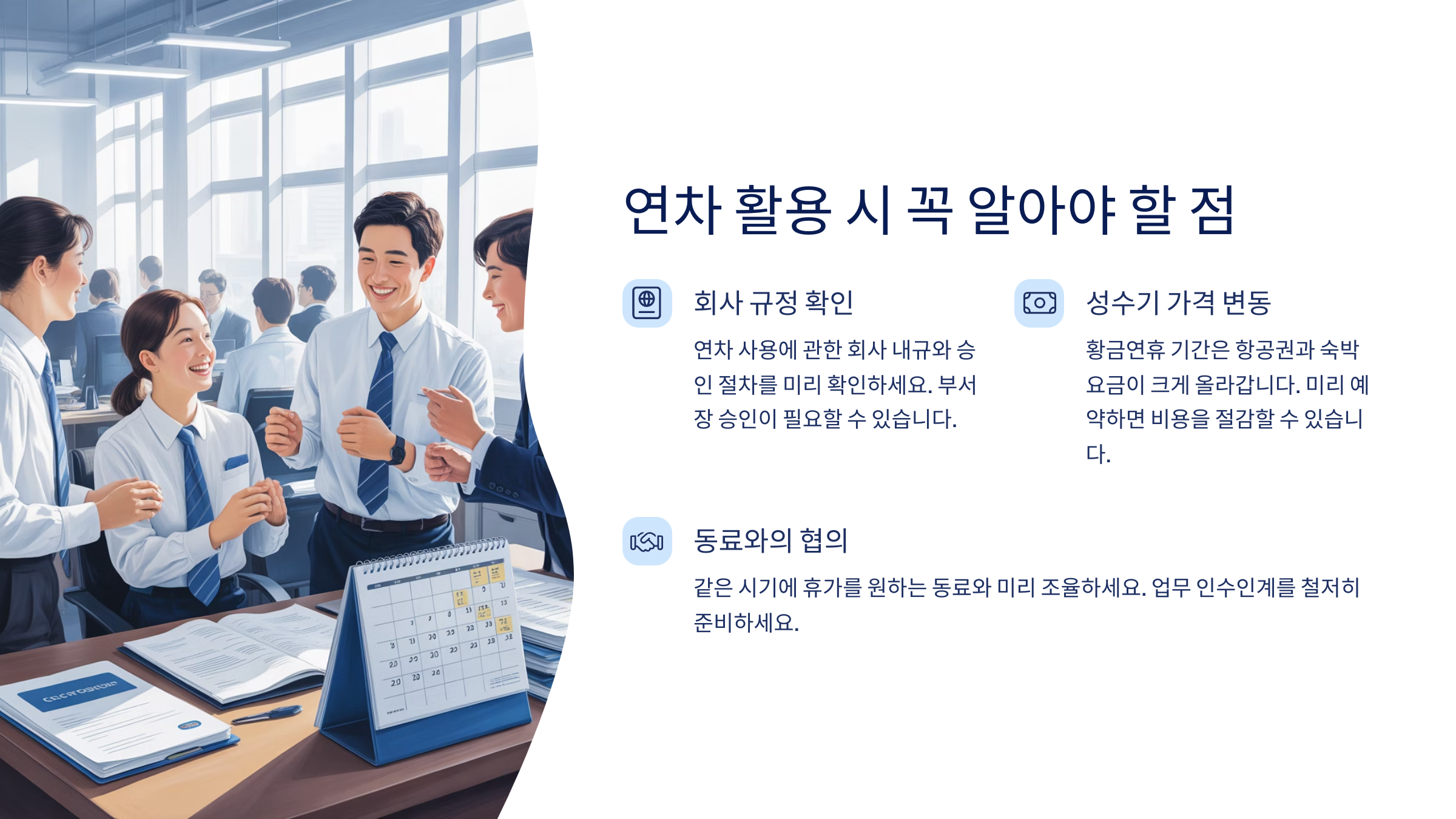 회사 내에서 동일 부서 내 중복 연차 제한이 있다면, 팀원들과 사전에 조율하는 것도 중요한 포인트예요. 괜히 분위기 어색해지지 않게 서로 윈윈하는 연차 계획이 필요해요.