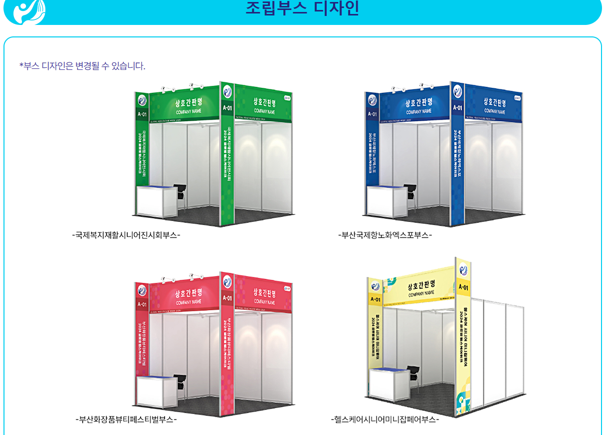 | 제공사항 | 간판, 조명, 바닥, 전기, 책상, 의자 포함 | 직접 시공 (벡스코 등록 장치업체 이용) |