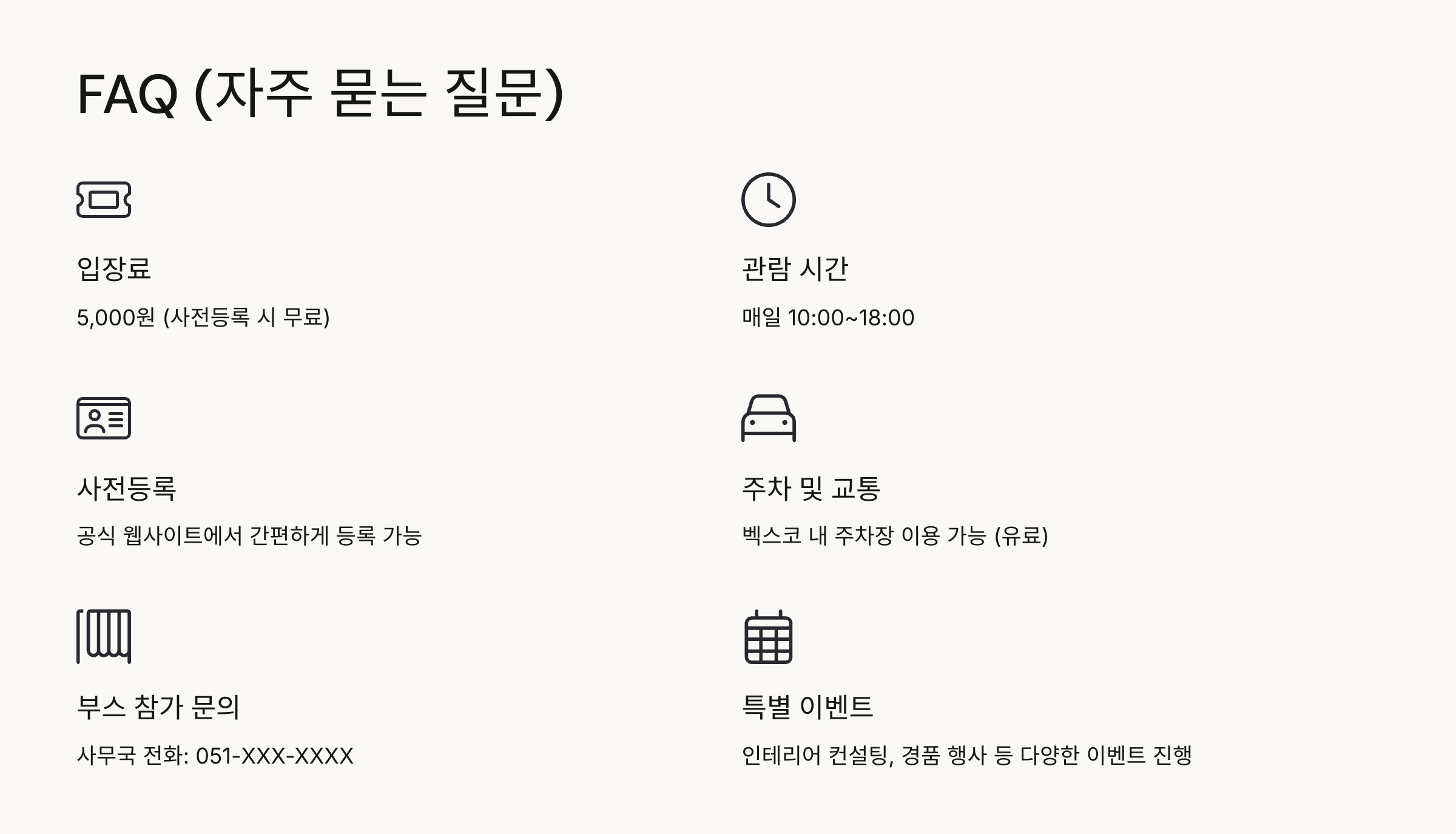 Q1. 부산 홈·테이블데코페어는 입장료가 있나요?