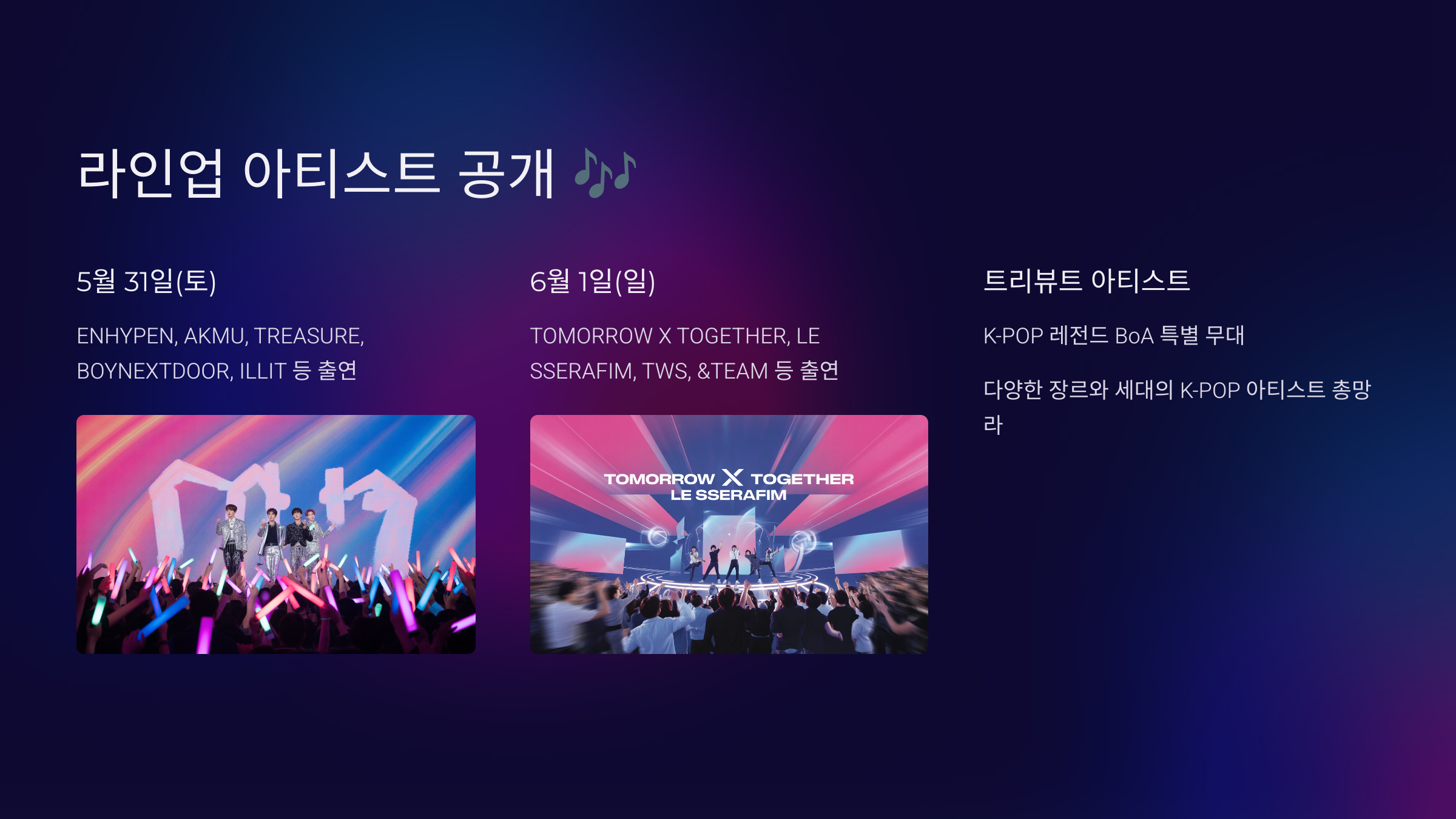 내가 생각했을 때 올해는 특히 참여 아티스트들의 라인업이 더욱 화려해진 것 같아요. 2024년보다 더 큰 무대, 더 많은 팬 참여 프로그램이 준비되어 있어서 전 세계 케이팝 팬들의 이목이 집중되고 있죠.