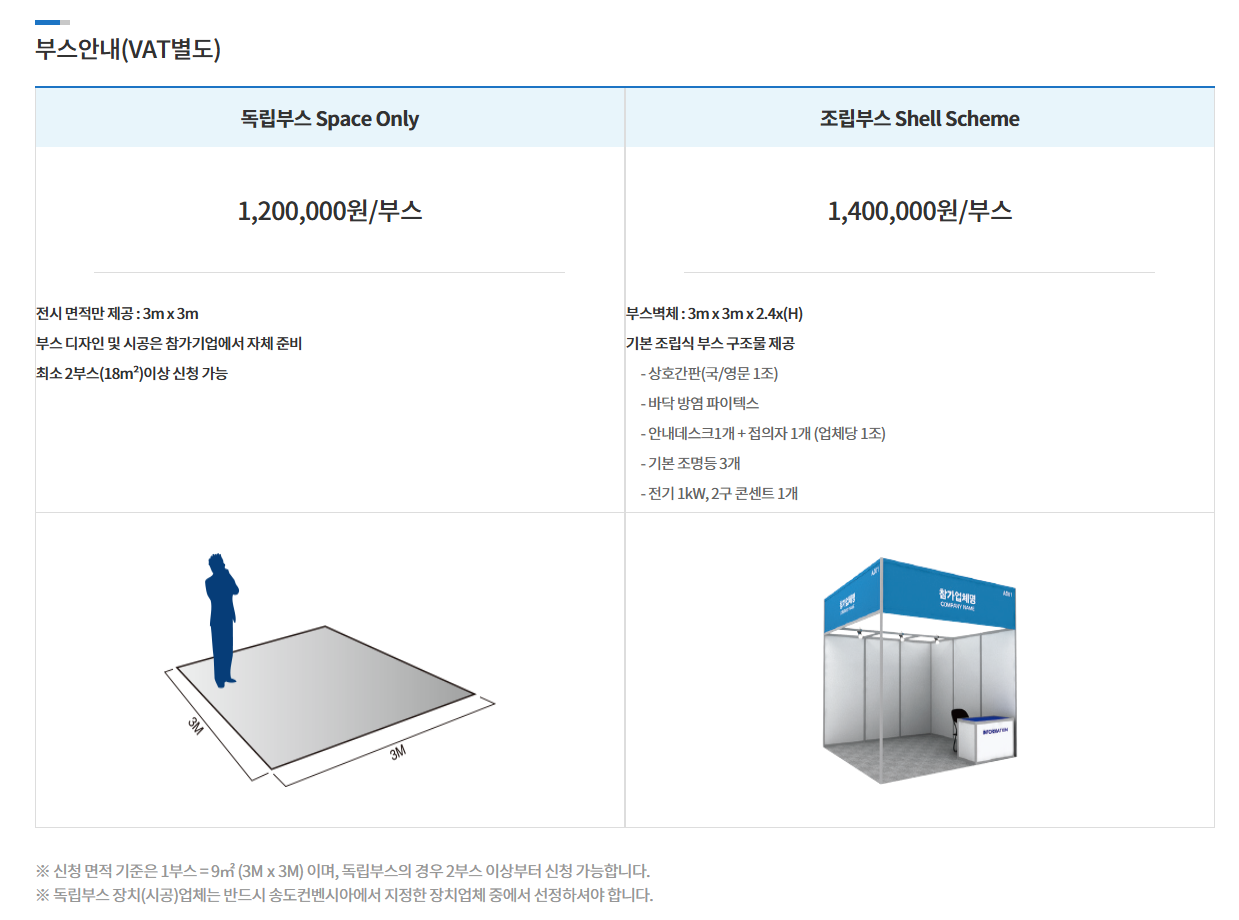 | 독립부스 | 1,200,000원 | 전시 공간만 제공 (장치 별도) |