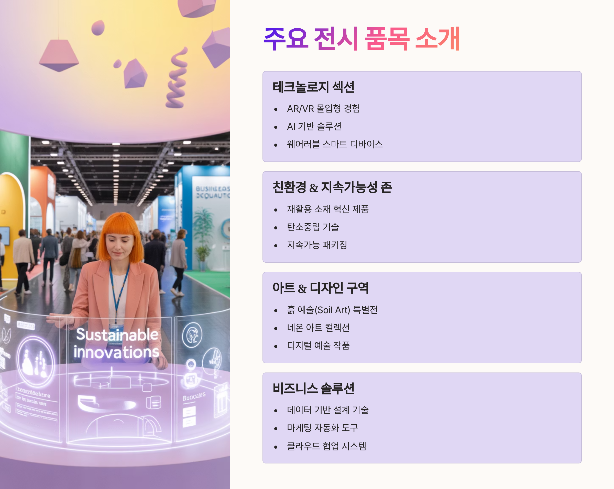 관람객들은 이 트렌드를 기반으로 어떤 제품이 현재 필요한지, 그리고 미래에는 어떤 기술이 나올지를 미리 엿볼 수 있는 귀중한 시간을 갖게 되는 거죠. 🙌