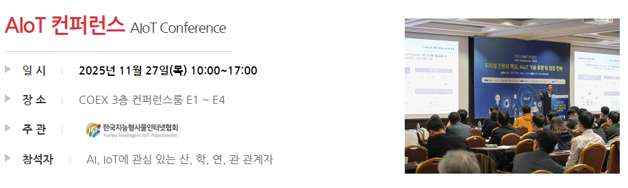 ※ 본 게시물은 2025 AIoT 전시회 공식 자료를 기반으로 작성되었으며, 일정 및 구성은 주최 측 사정에 따라 변경될 수 있어요.