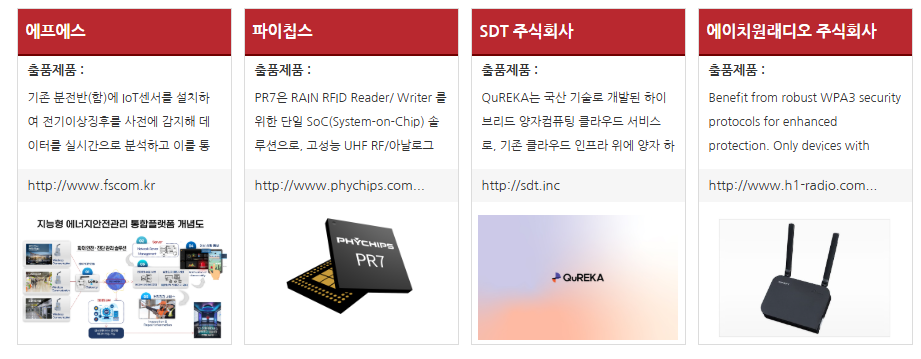 참가업체로는 원컨덕터, 에프에스, 슬레노, 파이칩스, 아모에스넷, 하이비, 유타렉스 등 다양한 산업군에서 두각을 나타내는 기업들이 포함돼 있어요.