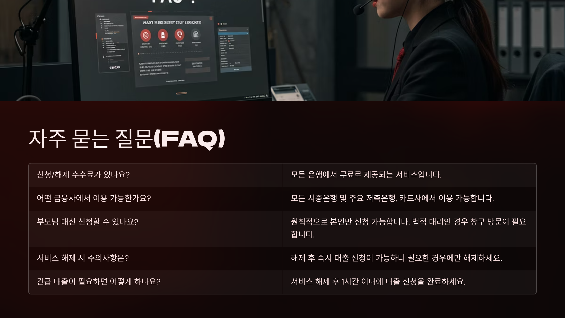 이 서비스를 신청하면, 본인이 직접 해제하기 전까지 금융기관은 대출이나 카드 발급을 진행할 수 없어요. 무서운 금융사기도, 실수로 발생할 수 있는 문제도 깔끔하게 막을 수 있는 거죠.🎯